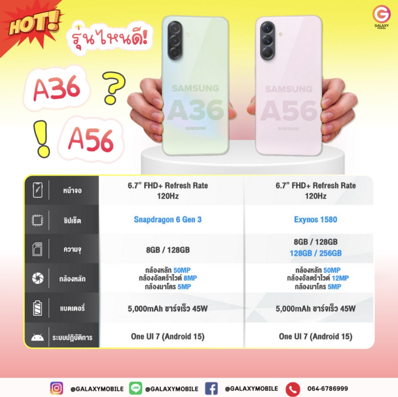Galaxy A56 และ Galaxy A36 ต่างกันตรงไหน?!