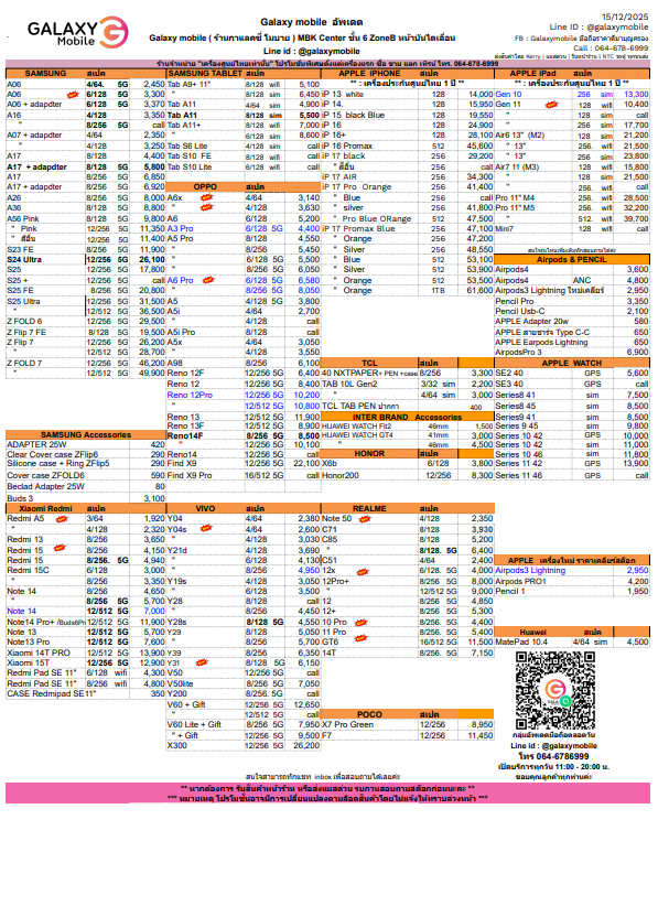สามารถอัพเดทใบราคาได้ทุกวันที่ Facebook : Galaxymobile
