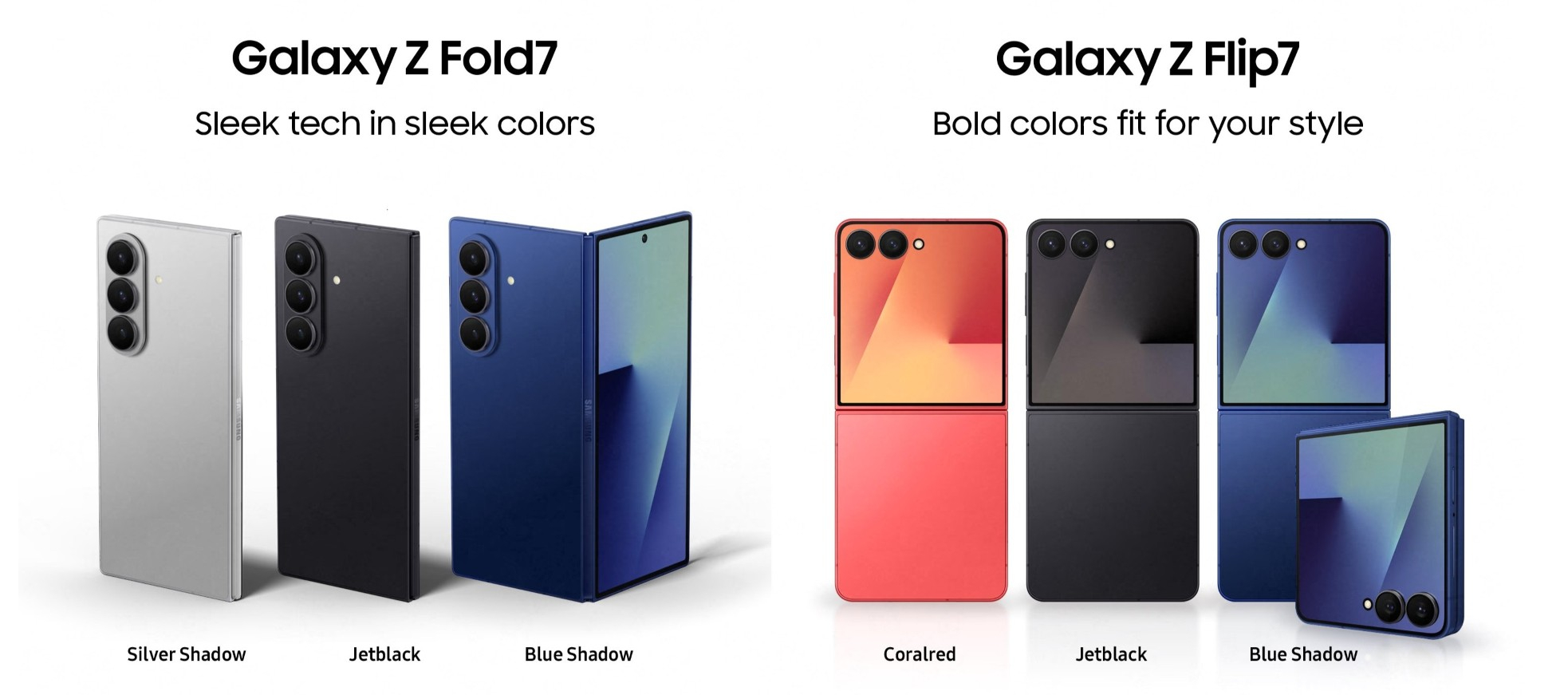 Galaxy Z Fold7 มี 3 สี ได้แก่ Silver Shadow, Blue Shadow และ Jet Black