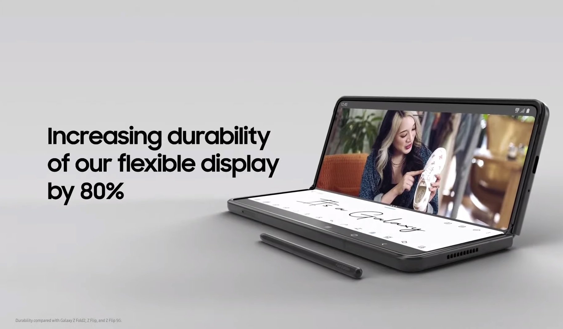 แต่สำหรับหน้าจอของ Galaxy Z Fold 3 ที่ใช้กระจก Ultra Thin Glass แบบใหม่ จะมีทั้งความยืดหยุ่นและความแข็งแรงทนทานมากกว่าหน้าจอรุนก่อนถึง 80% ซึ่งนอกจากมันจะทนต่อการขีดข่วนจากการใช้งานในชีวิตประจำวันมากกว่าเดิมแล้ว มันยังมีความแข็งแรงมากพอที่จะใช้งานกับปากกา S Pen ได้โดยที่ไม่ทำให้หน้าจอเป็นรอยเวลาขีด ๆ เขียน ๆ อีกด้วย